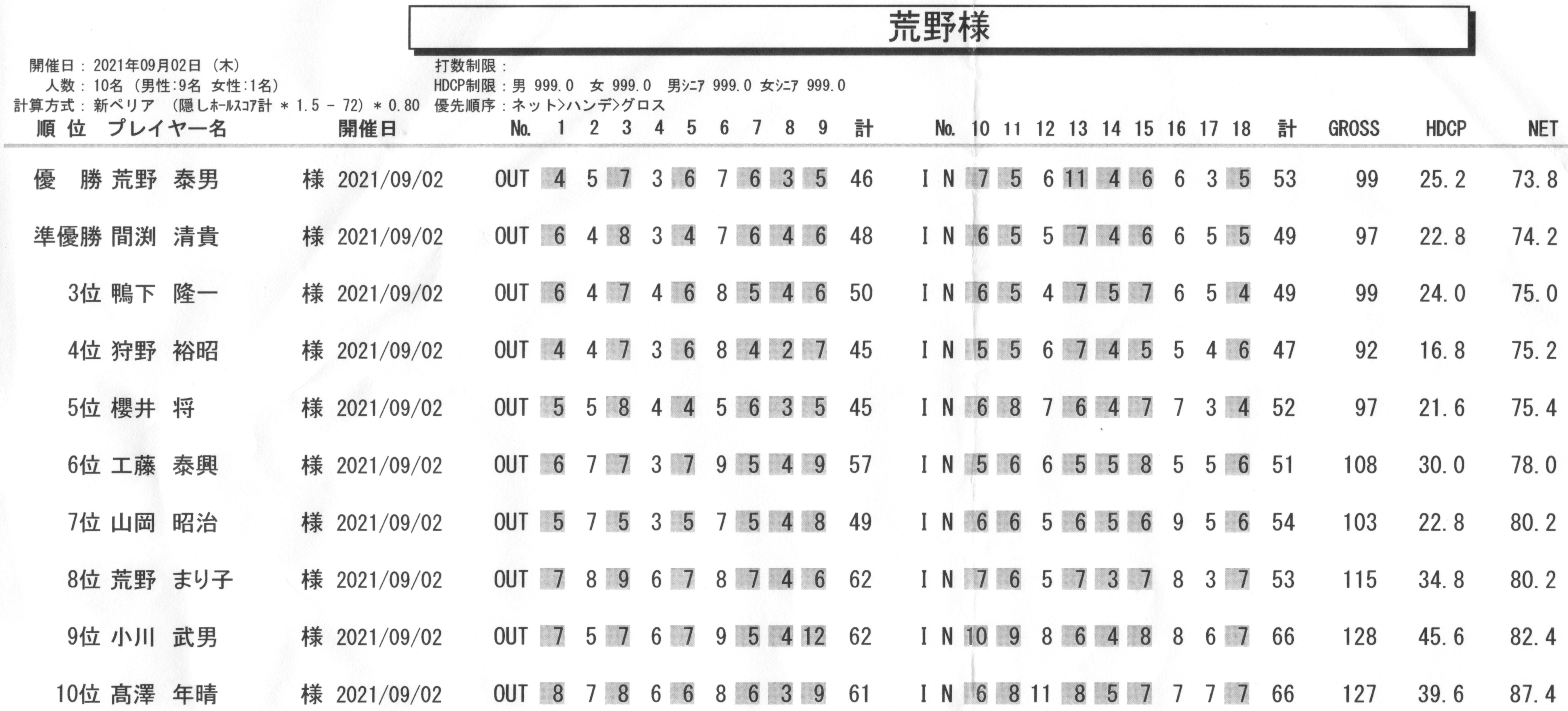 | 8:00〜 | 【西武園ゴルフ場】狩野裕昭 翔太 健太 鴨下隆一 |